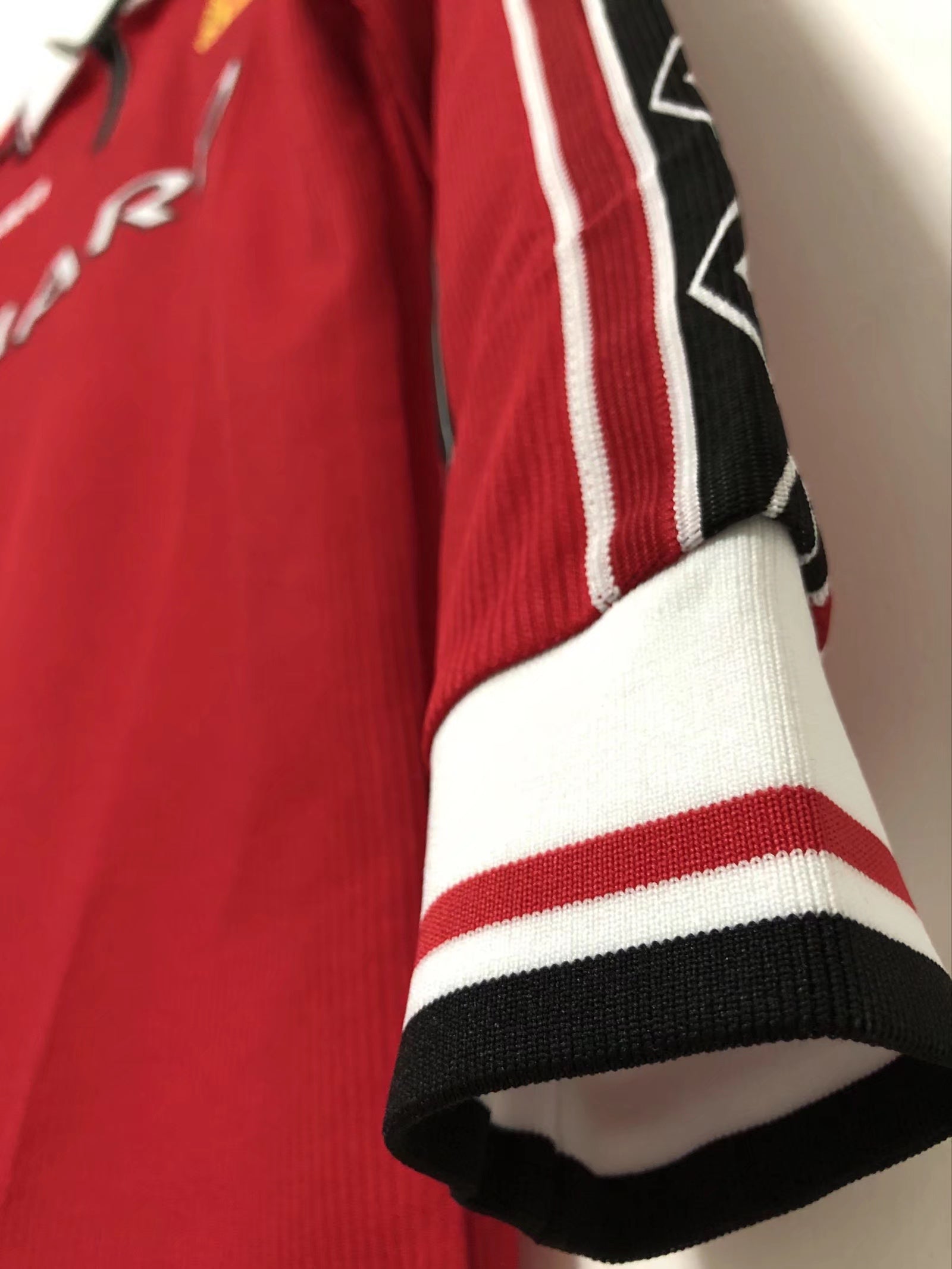 Unit price perThe 1998-1999 Manchester United home shirt is one of the most legendary football kits of all time, worn during the club’s historic treble-winning season. Designed by Umbro, this long-sleeve edition features the classic red base with black and white accents, a fold-over collar with a black zip, and the iconic Sharp sponsor. This jersey became a symbol of Manchester United’s dominance under Sir Alex Ferguson, culminating in an unforgettable UEFA Champions League triumph.